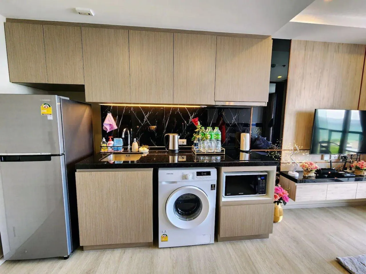- В квартире есть вся бытовая техника, а также WiFi и Smart TV