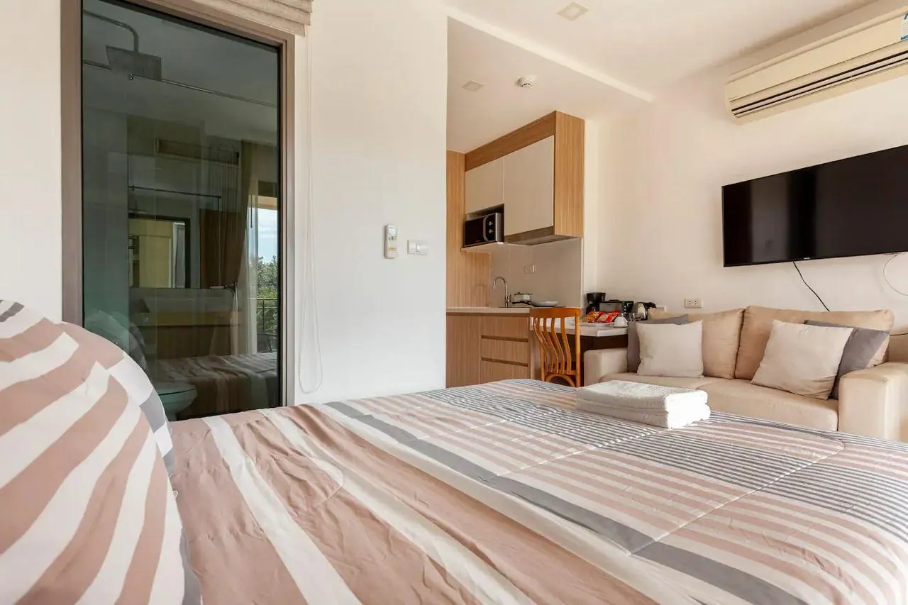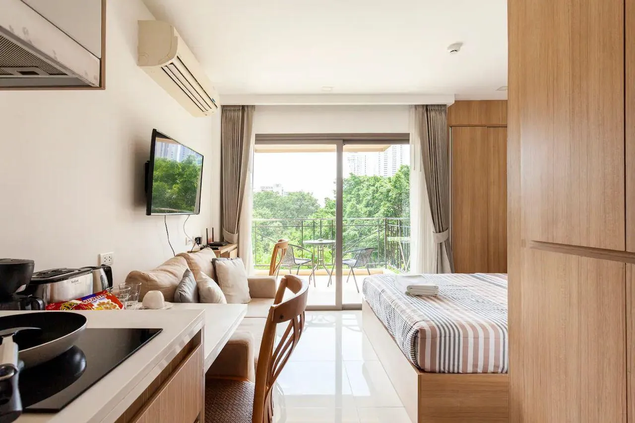 Кондоминиум находится в тихом и уединенном районе, окруженном зеленью. 7 минут до пляжа Вонгамат. Рядом рестораны, кафе и магазины, в 1 км от ТЦ Терминал 21.
